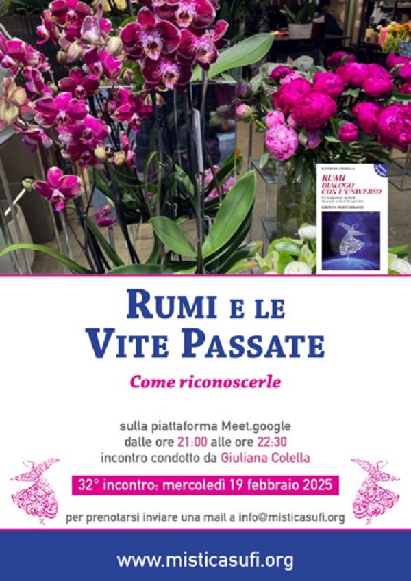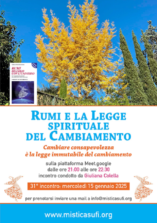 Sede: L'incontro si terrà sulla piattaforma Meet.Google, mercoledì 24 gennaio. Chi desidera partecipare scriva a: info@misticasufi.org