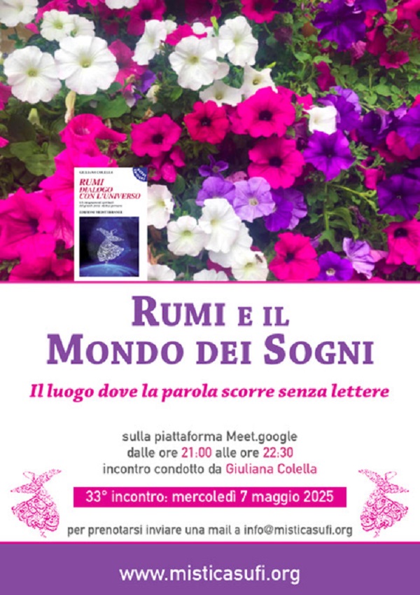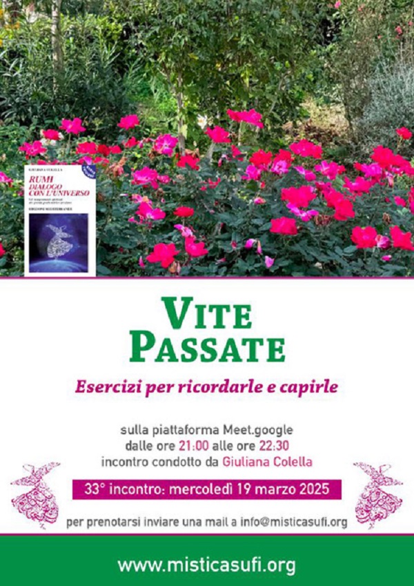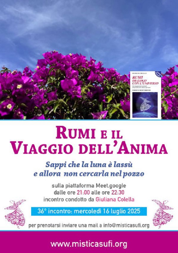 Sede: sulla piattaforma meet.gogle per partecipare scrivere a info@misticasufi.org